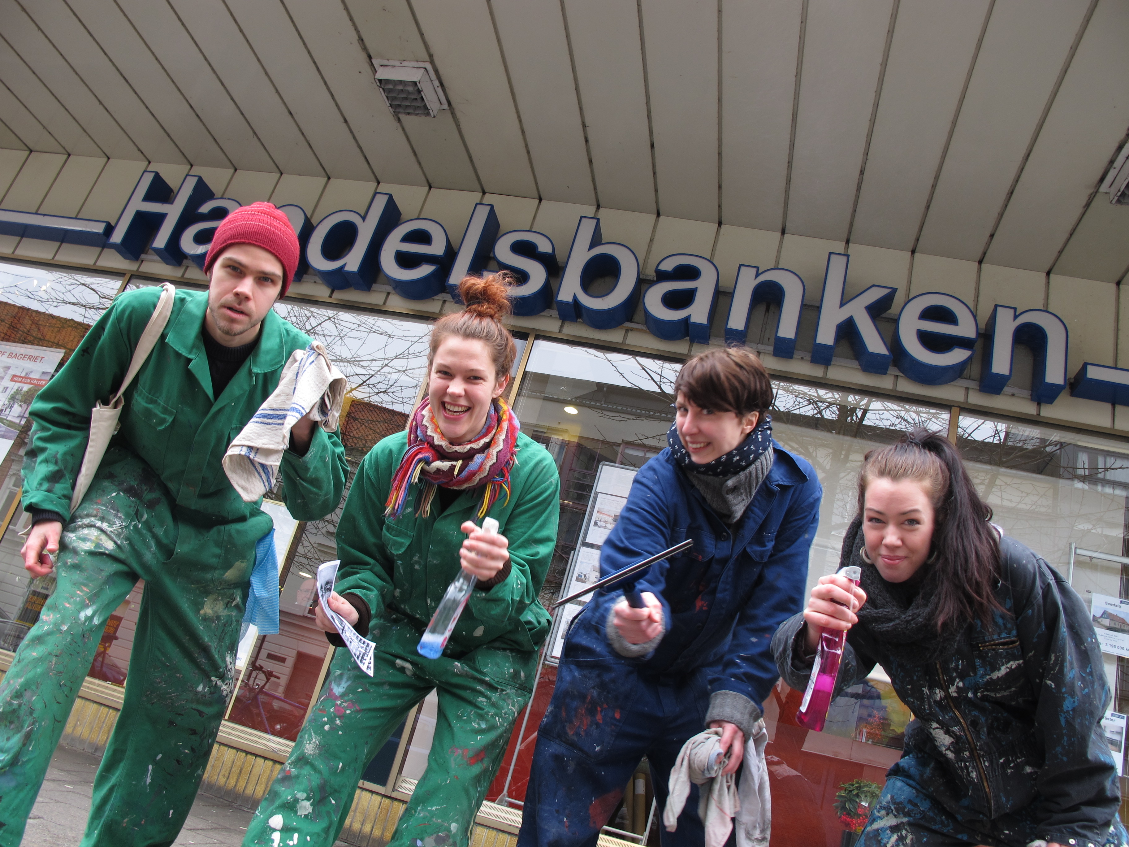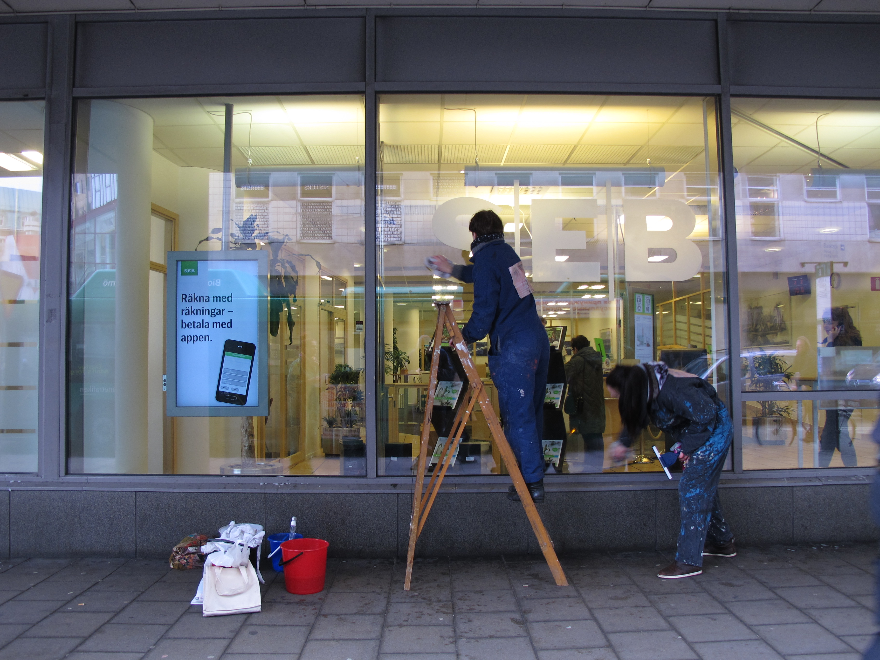 El caso de Bankia parece que por fin ha llegado a la Fiscalia Anticorrupción. En Malmö, la ciudad donde vivo, también se trabaja duro para que los bancos sean mas transparentes. El colectivo Besök En Bank (Visita un banco) se ha puesto manos a la obra con cubos, esponjas y escaleras: