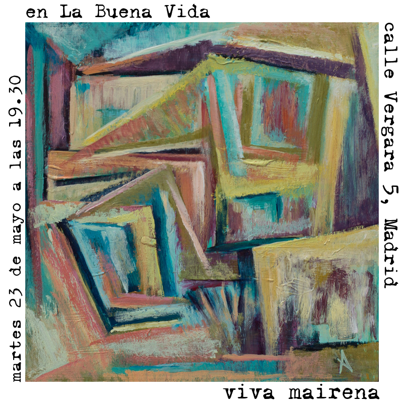 Viva Mairena es un nuevo proyecto a largo plazo que consiste en ir grabando poco a poco mis canciones, cuatro o cinco al año, las que me vaya dando tiempo. Cada canción va a ir acompañada de un cuadro de Andrea Mateo Renovell. Lo de Viva Mairena es por varias cosas que ya iré concretando poco a poco pero principalmente porque me acuerdo mucho de Juan de Mairena y de Antonio Machado cada lunes, cuando tengo que interrumpir mis ratos de lecturas y escritura para ir a un instituto a dar clases.